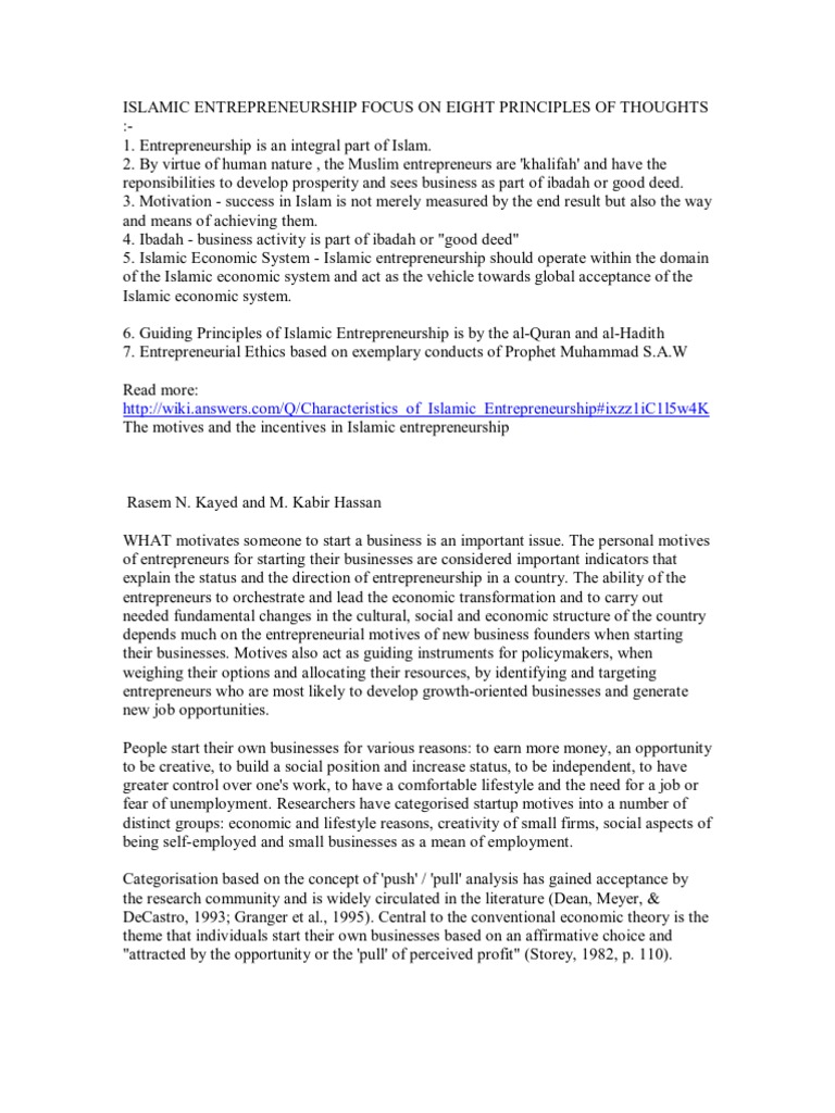 Islamic Entrepreneurship Focus On Eight Principles Of Thoughts Pdf Entrepreneurship Motivation